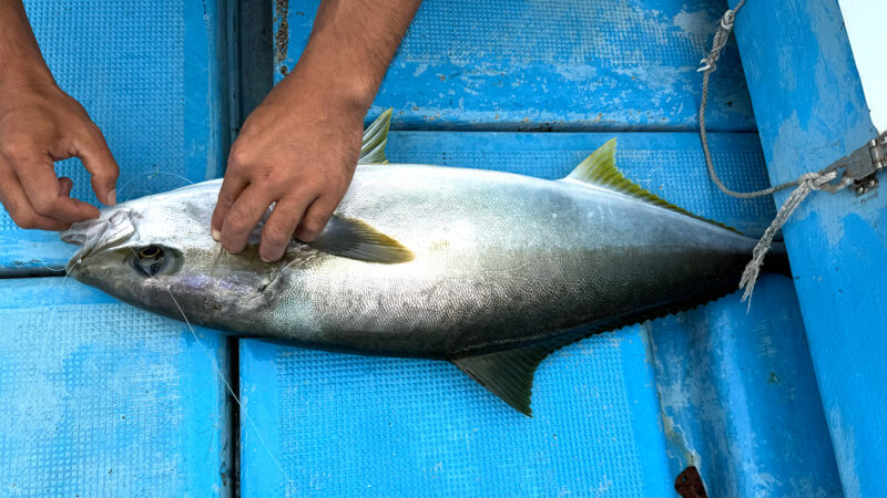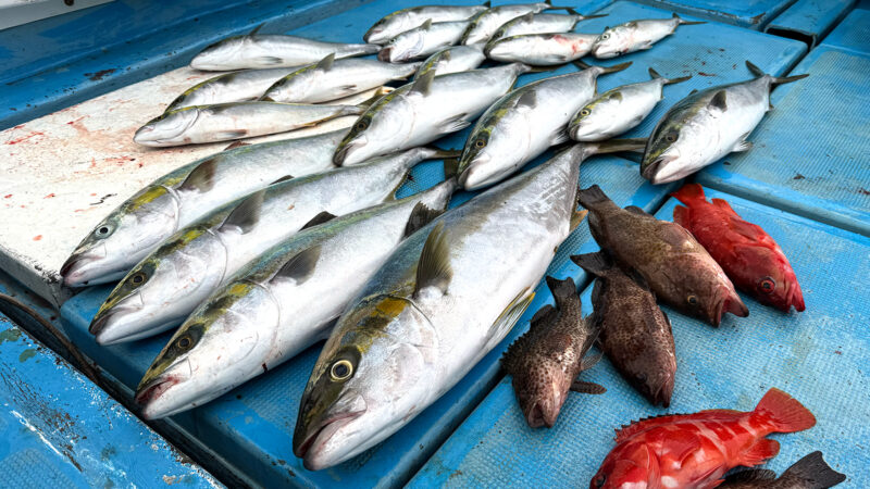 遊漁船UROBOROSにて落とし込み釣り!ヒラマサ登場!