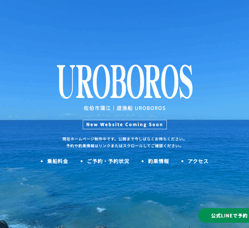 遊漁船UROBOROS様のティザーサイトを公開しました。